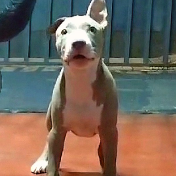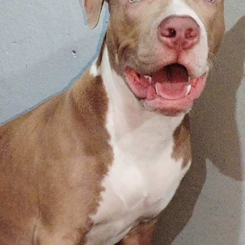 Macho color beige con blanco ojos claros donde se mezclan el gris verde y celeste