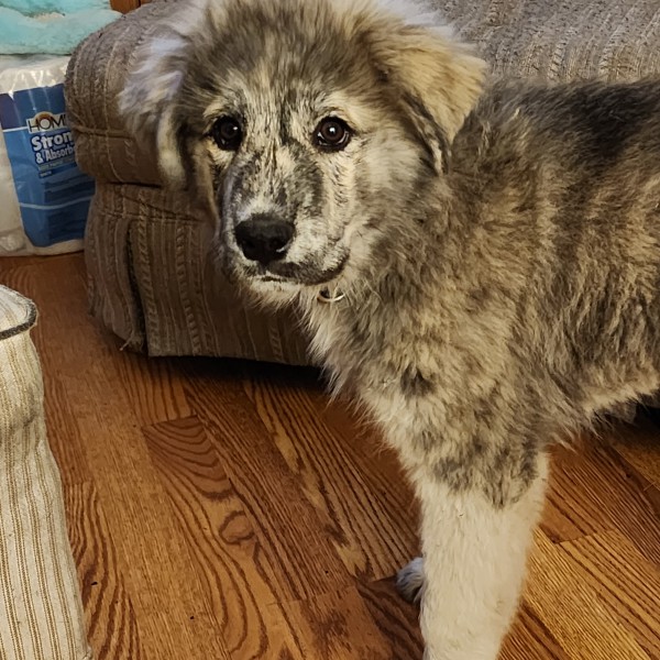 Iron grey with wolf ish looking face