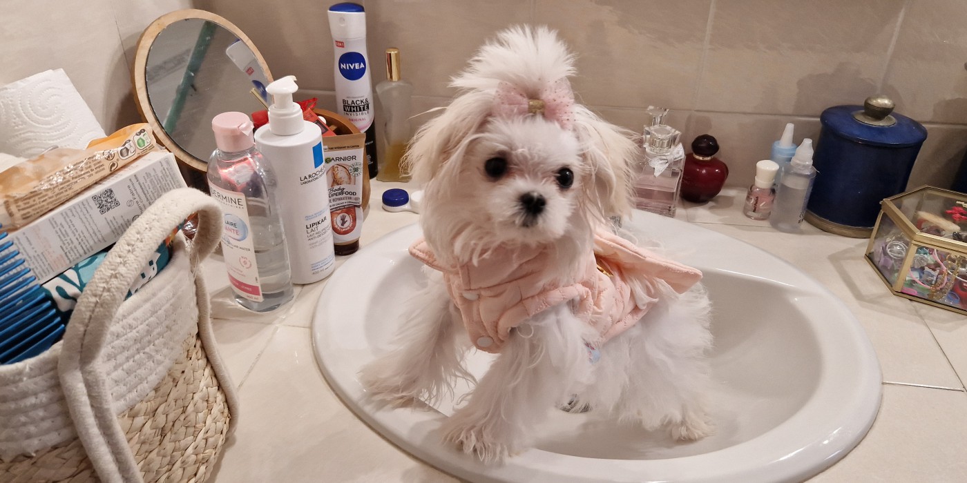 Une craquante petite bichonne maltaise blanche.
