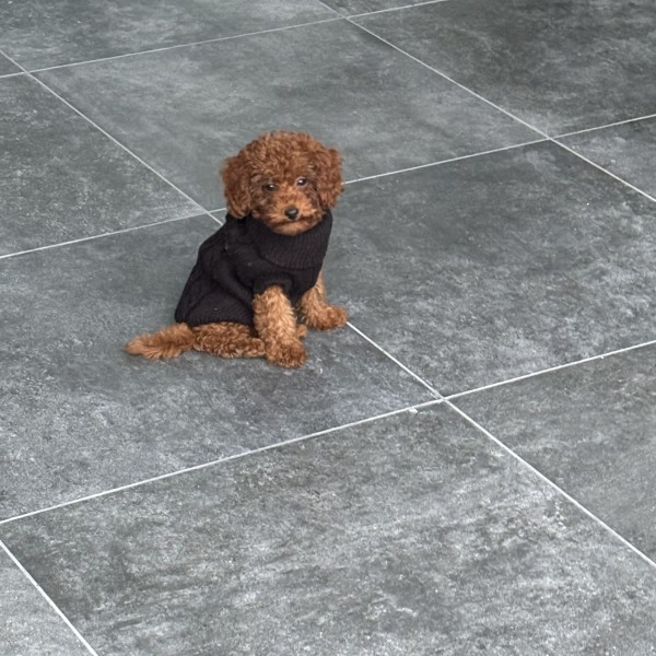 Bruin rode Toy poodle